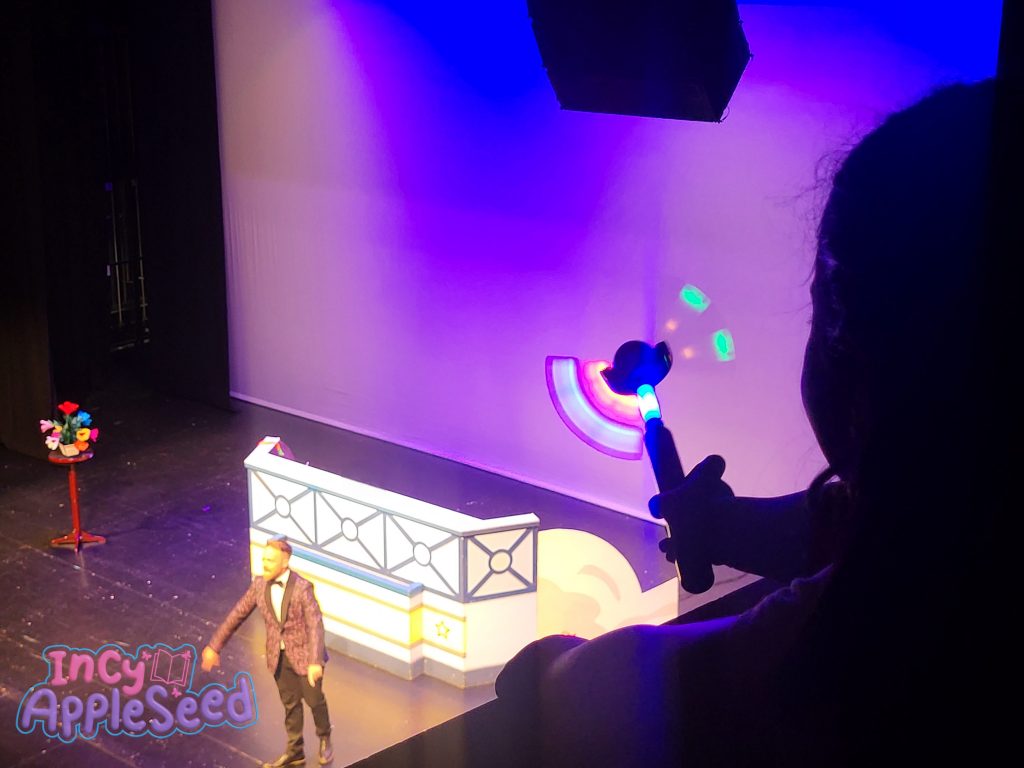 Finally, it was time for the Sooty show. Incy had watched some episodes of Sooty shortly before the festival for the first time. She was instantly hooked. Mama Appleseed explained Sweep had been her favourite as a child but Incy decided Sooty was her favourite “because he’s naughty”!