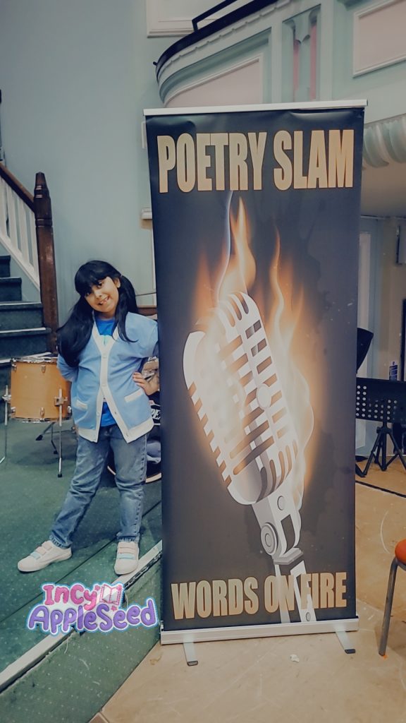 Incy was the first person to take to the stage, performing her hilarious poem Mug on a Rug. The reception was fantastic and she was approached throughout the evening by adults and children complimenting her performance, poetry and confidence.