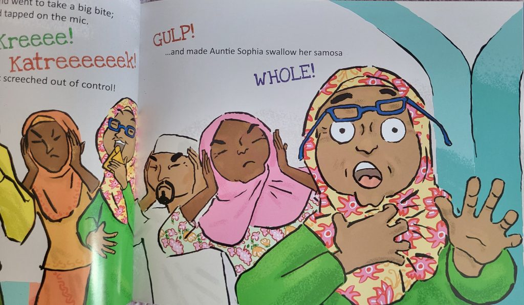 Auntie Sophia is preparing some food for an iftar taking place later that night at her local masjid (mosque). But when her back is turned her cheeky cat Serrano decides the dish needs more flavour. At the iftar, when Auntie Sophia tries to take a bite of the samosa, she is startled and swallows the samosa whole!