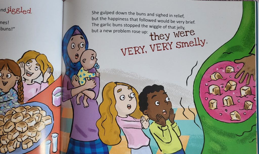 Most readers will be familiar with There was an Old Woman who Swallowed a Fly; a rhyming text detailing the most bizarre tale; a woman swallows a series of creatues, beginning with a tiny fly all the way up to a horse. A spin-off of that classic tale comes There was an Old Auntie who Swallowed a Samosa; a very entertaining premise featuring Muslim characters. This book was written by the founder of the brilliant publishing company Ruqaya’s Bookshelf.
